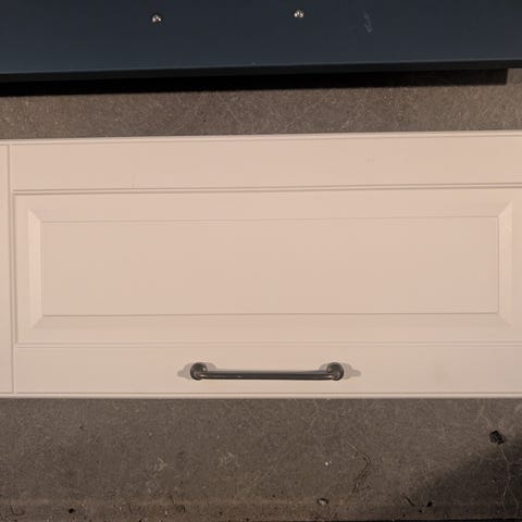 Selger to brukte skuffefronter. Selges samlet. Skuffefronten er 60cm bred og 26 cm høy. Valviken