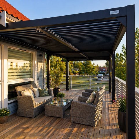 Enkel Justering: Tilpass pergolaen etter dine preferanser og romkrav. Velg mellom Glassvegger eller sidevegger