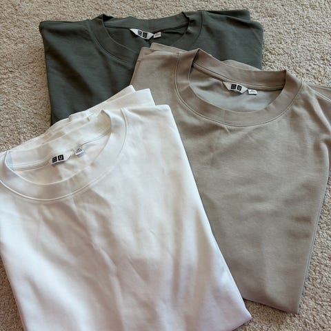 Rød ubrukt, beige så vidt brukt og grå litt brukt.