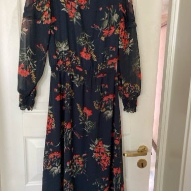 Helt ny/ubrukt kjole fra Jean Paul i normal str M. Lappen er dessverre tatt av for prøving. Herlig modell med strikk i livet - svært behagelig på. Deilig silkeaktig ytterstoff (viskose) og innerkjole av polyester. Lange ermer med strikk nederst. Lengde ca 125 cm midt bak. Passer fint både som festkjole og hverdagskjole. Pris som ny var 2199,-