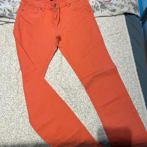 Bukser: Blå Jeans: Skinny High waist ankle lengde str. 33. Hvit demin leggings low waist str. 33-32. Dressbukse: svar fra H&M str. 42