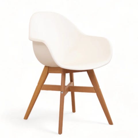 Stilige stoler med et komfortabelt sete med armlene i plast/ polypropen og solide ben i eukalyptus tre.