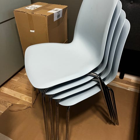 Selger 6 stk pent brukte stoler til bruk både inne og ute, kjøpt på IKEA.