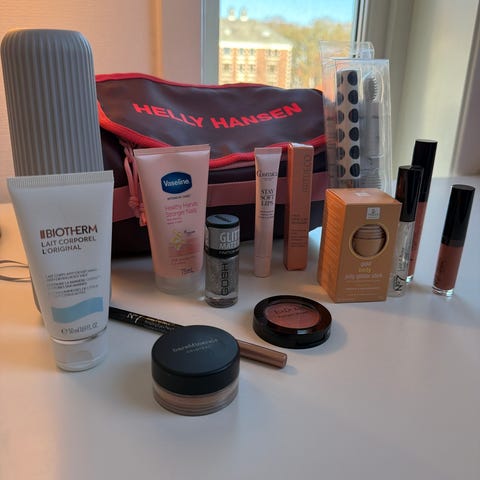Pakke med kosmetikk og hudpleie.