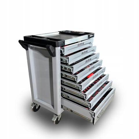 Den består av 10 kofferter med innlegg som er tilpasset det verktøyet som ligger der.