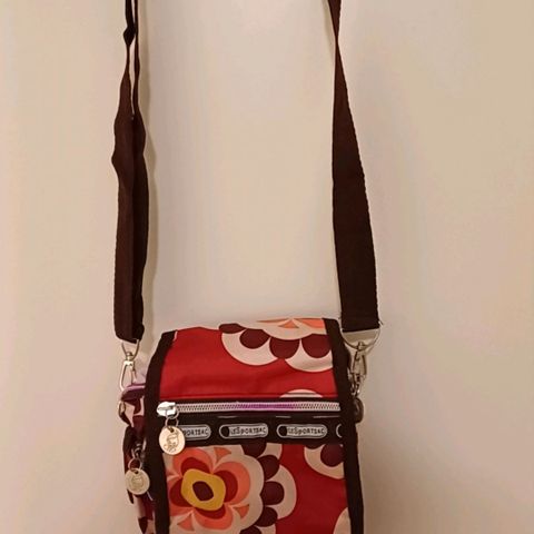 Nydelig stor blomstret weekendbag fra 90-tallet. Vært med meg omtrent hele livet. Lite brukt de siste 20 årene. To store rom som kan lukkes med glidelås, begge fungerer utmerket. Noe slitt på den ene skulderstroppen. Se bilde.