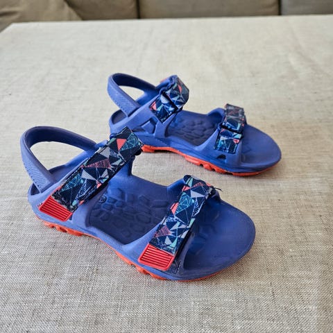Sandalene har en overdel i tekstil og syntetisk materiale, og en yttersåle laget i gjenvunnet gummi, som gjør det ekstra behagelig å gå. Perfekt til varme dager og lek ute!