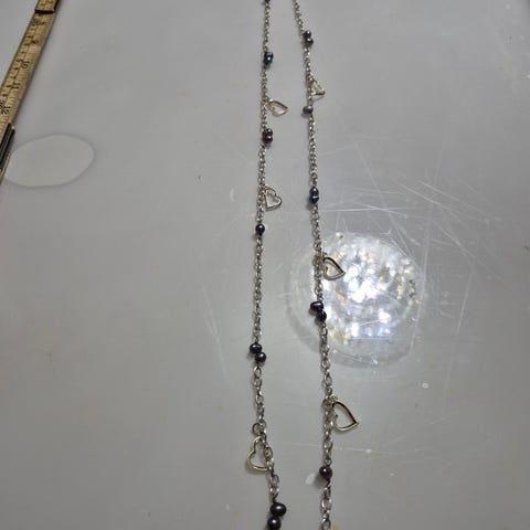 Se bilde for lengde på smykke. Kjenner ikke til materiale men ikke sølv. Ingen synlige skader.