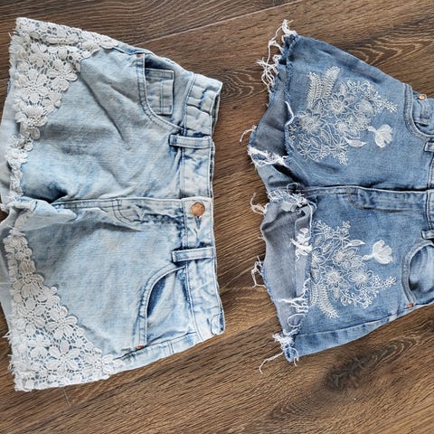 Hvit og svart short fra KappAhl str. 146. Sammen 50 kr.
