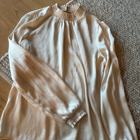 Nydelig bluse i offwhite med en liten fargetråd v knappelinjen. Myk og behagelig i stoff og passform. Splitt i rygg, knapper på ermene. Str small. Som ny, brukt en gang.