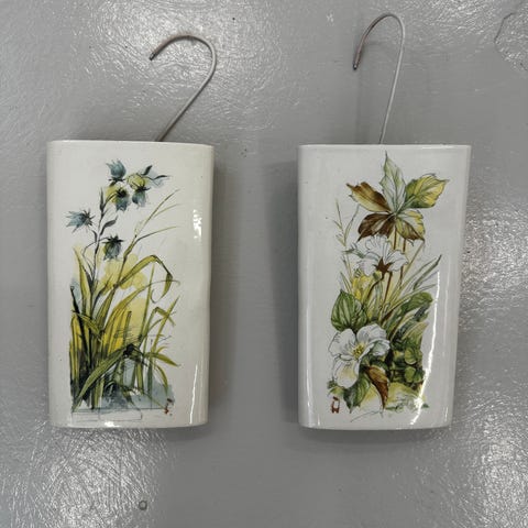 Unik og nostalgisk porselensplate med vakre håndmalte blomster i blåtoner. Perfekt til bruk som dørskilt, veggpynt eller dekor på hytte, kjøkken eller i gangen. Med hull for oppheng er den klar til å få nytt liv i et koselig hjem.