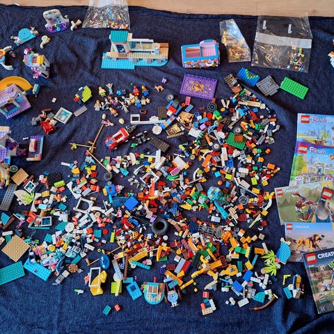 Settene er gått gjennom og alle deler skal være med. Pris per sett vises på bildene. Noen mangler klistremerker, står informasjon på bilder på de settene det gjelder.
