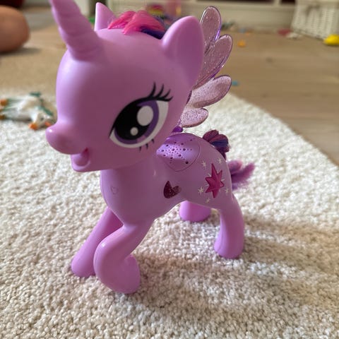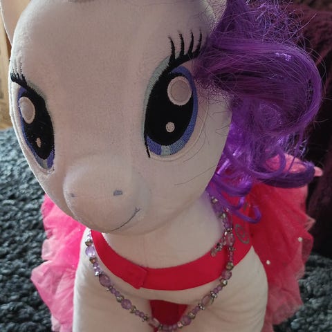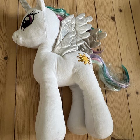 Pent brukt kosedyr fra My Little Pony. Hun er ca 30 cm høy fra øre til klov.