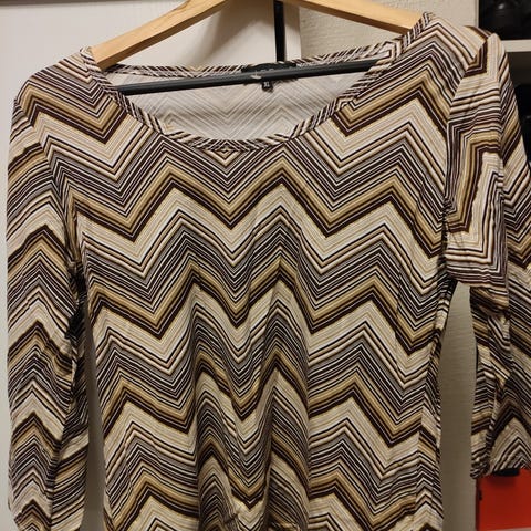 For venninne selges denne nydelige toppen som faller så flott da den er foret. Brukt noen få ganger, da hun kjøper nytt hele tiden. Lengde 57 cm . 7o% viscose, silke 30%. Røkfritt hjem. Ferdig pruttet.
