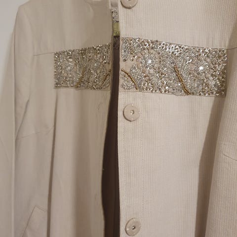 Nydelig omtrent ubrukt blazer fra Noa Noa selges rimelig. Blazeren er i en hvit/blå stripete stoff med lommer og knappelukning foran. Innerstoff i mørk blå.