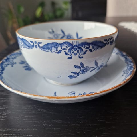 Tre te/kaffekopper med skåler i serien «Julia» fra Rørstrand. Høyde på koppene er 6,5 cm og diameter 8,5 cm. Diameter på underskåler er 15.5 cm. Koppene er i god stand. Den ene koppen har litt ujevn farge innvendig (fra produksjon). Selges samlet for 330,-