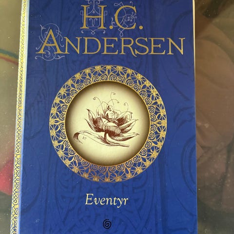 Vuggen hennes var et flott, lakkert valnøttskal, blå fiolblader var madrass, og til dyne fikk hun et roseblad.