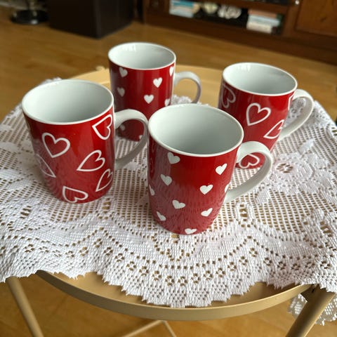 Fire krus i kjempefin grønnfarge. Helt fine uten bruksmerker, stått ubrukt i skap.
