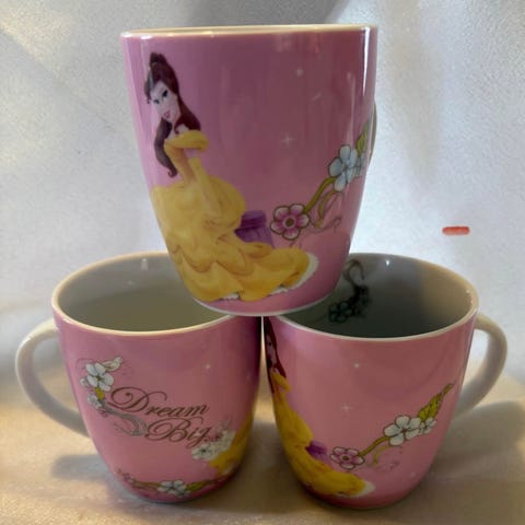 2 strøkne Disney prinsesse krus 60kr stk