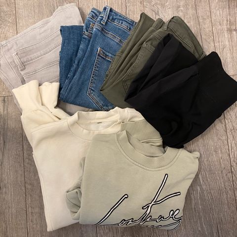 Pent brukt klær. Du kan sette sammen din egen pakke som du ønsker for 49 kr pr stk. Ta et skjermbilde og skriv til meg det som interesserer deg. Klærer er xs-s-m som ble brukt i størrelse S.