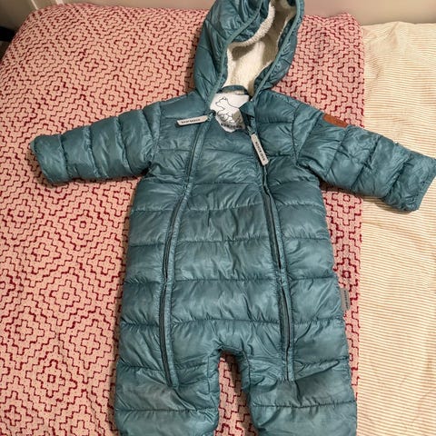Varm, fôret Pilecub babydress fra Nordbjørn med en teddyfôret hette. Den er laget av tynn, varmende fleece og har doble glidelåser. Mulighet for å folde endene på ermer og ben over hender og føtter for ekstra varme.
