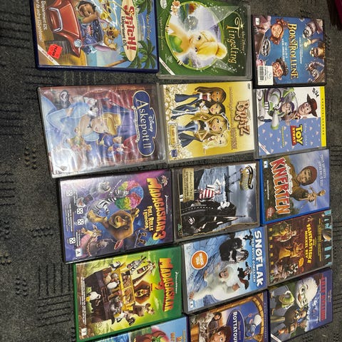 Selger 65 dvd filmer. For det meste barnefilmer. Selges samlet