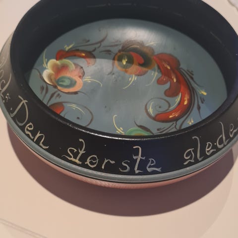 Flott bolle / fat av trekåte, laget av trekunstneren Oswall Knutsen i 1990.