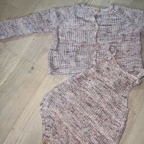 Søtt sett som kan brukes både sommer og vinter. Myk bloomer fra wheat og myk ulltopp som er hjemmestrikket.