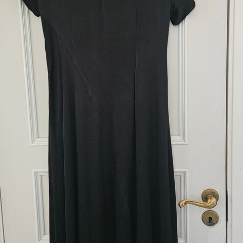 Pent brukt kjole fra Indiske selges. Den er ettersittende frem til livet, også går den ut i litt løsere stil. Tror det kan kalles en A-line. Det er litt stretch i stoffet, og armene er 3/4 lange. Behagelig å ha på. Bare å spørre om flere bilder