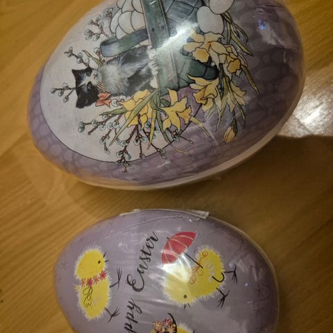 Eggene er tomme og må fylles av kjøper. Selges for kr 100