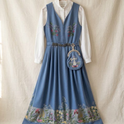 Hel og pen Oslodrakt i den orginale blåfarven. Sydd hos Steen & Strøm. Ingen skader i stoff og alle broderier er hele og pene. Denne er godt tatt vare på og meget pent brukt.