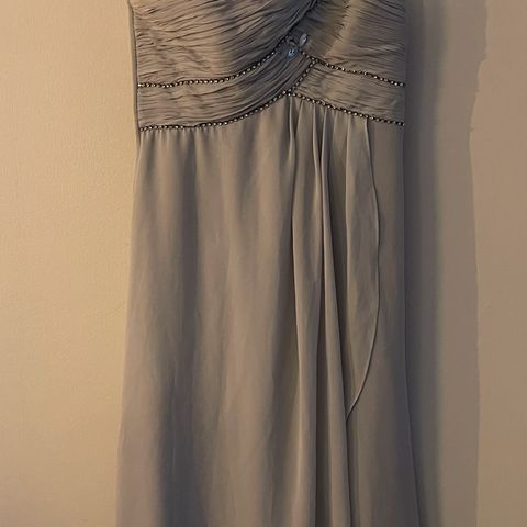 Nydelig kjole, halterneck og bar rygg med fine perle detaljer. Passer str 36/38.