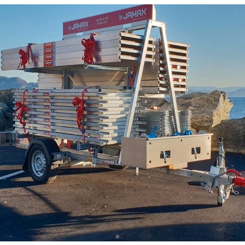 Utleie av Jamax stillaspakker med henger. Har til sammen 180m2 stillas. Hvorfor leie stillas av oss? Vi har 11 plattformer med stige, som gjør at du kan sette stillaset opp på 1 til 11 separate vegger samtidig. Kan deles opp og leies ut i ulike pakker. Ta kontakt så kan vi tilpasse pakken til ditt behov.