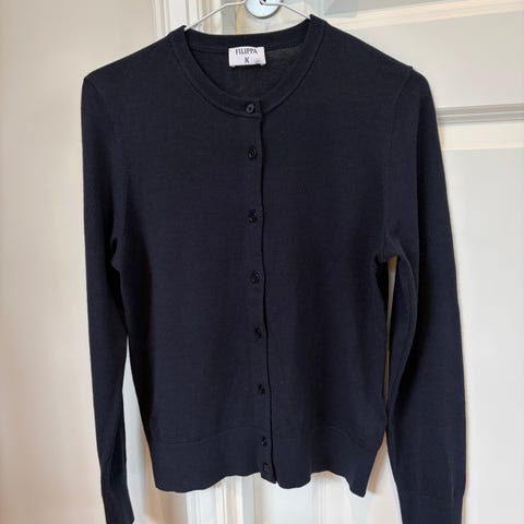 En enkel og klassisk svart cardigan fra Gina Tricot, brukt lite og i flott stand. Perfekt som et allsidig plagg for å style både hverdags- og finere antrekk.