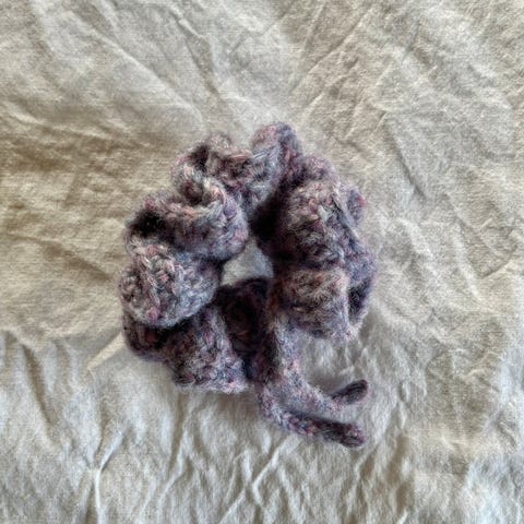 Hårbånd i 100% bomull håndheklet av meg. Fargeskift lilla til svart. Måler 100x9cm. Helt ny og unik. Litt gotisk stil🕸️🕷️