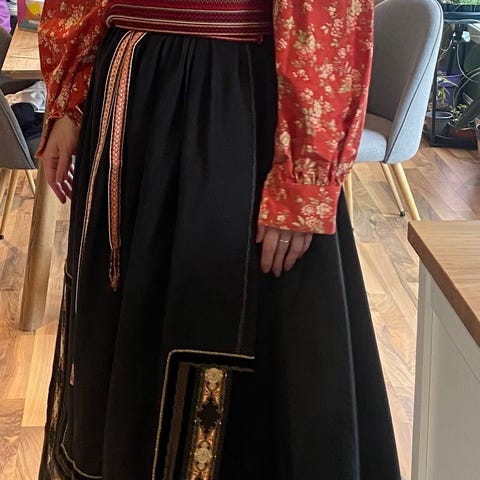 Helt ny håndsydd bunad skjorte/ festdrakt skjorte 🖤💛ca størrelse 36-40 eller small/medium, skjorten er i bomull .Skjorten har hull til mansjettknapper ved håndleddet. Skjorten er ubrukt, den er samme størrelse som alle andre skjorter på profilen min. Jeg/modellen er 172 høy og bruker til vanlig 36-38. Jeg hjelper min svenske tante med å selge skjorter. Hun er utdannet skredder, tekstillærer og har jobbet med tekstil og søm nesten hele sitt yrkesliv og syr nå skjorter som hobby på fritiden.