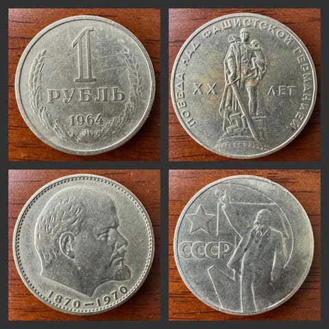 1 rubel med Lenin er en mynt som ble lager i Sovjetunionen. Den viser en profil av Vladimir Lenin, den ledende figuren i den russiske revolusjonen. På forsiden er det inskripsjoner som angir verdien, mens baksiden ofte viser ulike symboler som representerer sosialismen. Mynten er et kjent samleobjekt og reflekterer historien og kulturen fra den sovjetiske perioden.