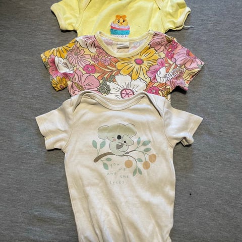 Pent brukt klespakke, noe brukt og noe ubrukt med lappen på.