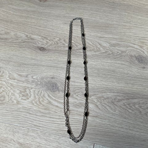 Dobbelt kjede med sorte glassperler. Lengde ca 110cm. Ukjent merke.