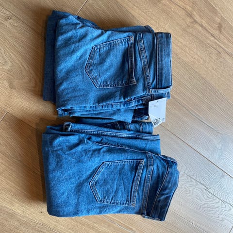 Selger et par pent brukte jeans/joggerjeans fra KappAhl. Myke og gode bukser. Str 146. Vaskelappen er delevis klippet bort.