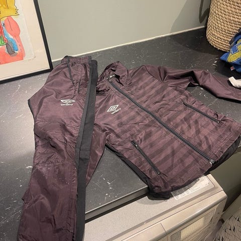 Sportsdress, varm for en gutt 9-11 år. Tilstanden er god. Litt slitt på ett sted på kneet, se bilde.