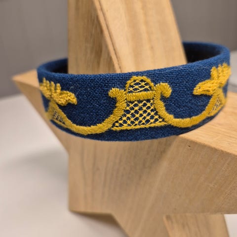 Hånd brodert hårbøyle i blågrønn