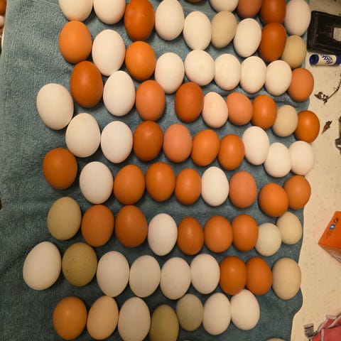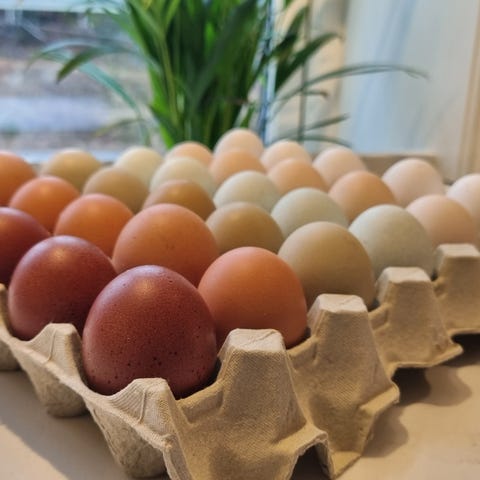 Selger rugeegg fra godt mixet flokk som vi har fått helt nydelige kyllinger fra😁 mange fine farger og variasjoner☺️ selges 20kr stk. Har lagt med bilder av diverse foreldredyr☺️ kan sende for 250kr☺️