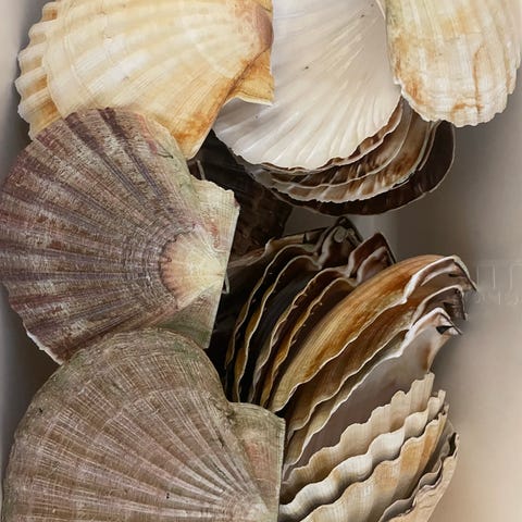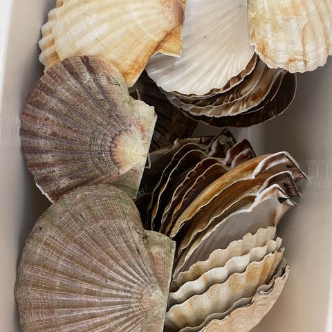 Dekorative kamskjell. Rengjordt. Topp og bunn.