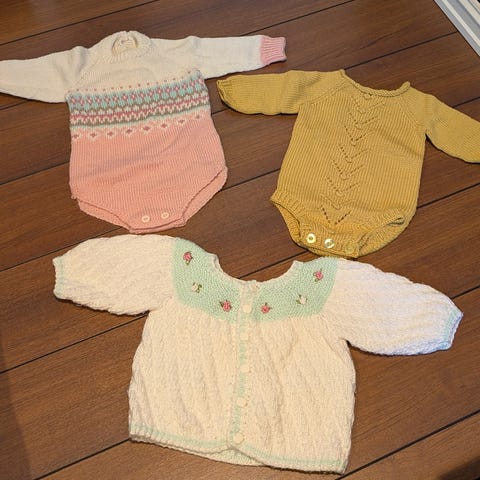 Strikket jumpsuits til baby 0-6mnd