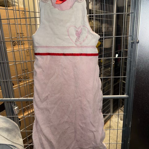 Grå drakt med rosa knapper: Strikket i Viking Sportsragg som inneholder 60% ull, 20% nylon og 20% akryl. Garnet er mykt og slitesterkt. Vaskes på 30 grader ullprogram. Størrelse 0-6mnd
