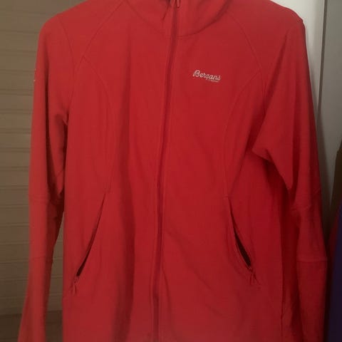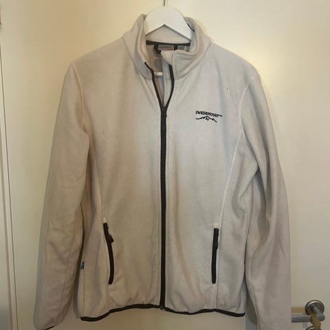 Fin flisjakke med .mørkeblå detaljer+glidelås lommer.