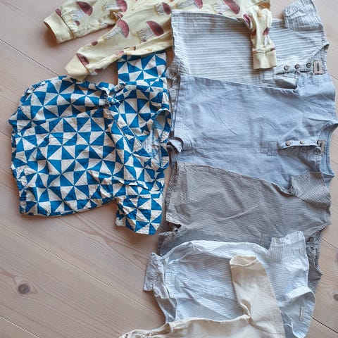 Alle klærne er kjøpt nye av meg. Alt fremstår i meget fin stand. Det er ikke noen bruksmerker på noen av plaggene som jeg kan se.