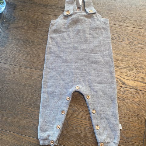 Selger en tøff og myk jeans-selebukse fra Hust & Claire i str. 68. Følger også med en pen og hvit body fra H&M i str. 74 🌿