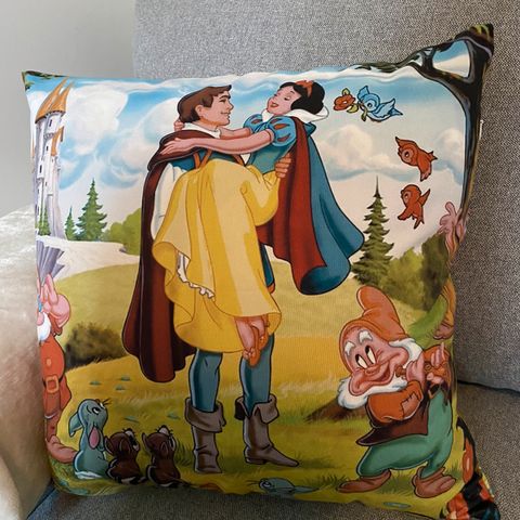 Søtt putetrekk med Snehvit-motiv, likt på begge sider.
